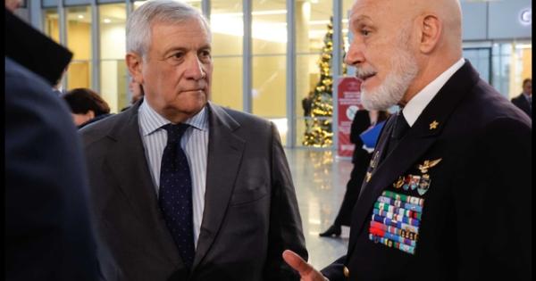 (ANSA) - BRUXELLES, 03 DIC - Il ministro degli Esteri Antonio Tajani ha incontrato il presidente del comitato militare della Nato, Giuseppe Cavo Dragone, a margine della ministeriale in corso al quartier generale di Bruxelles. (ANSA).