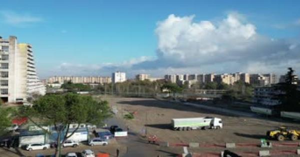 Due grandi escavatori al lavoro sotto lo sguardo del sindaco Manfredi e del governatore Fico