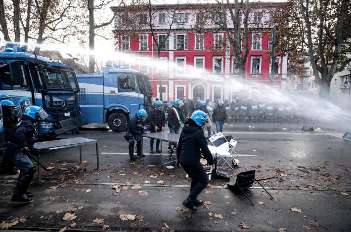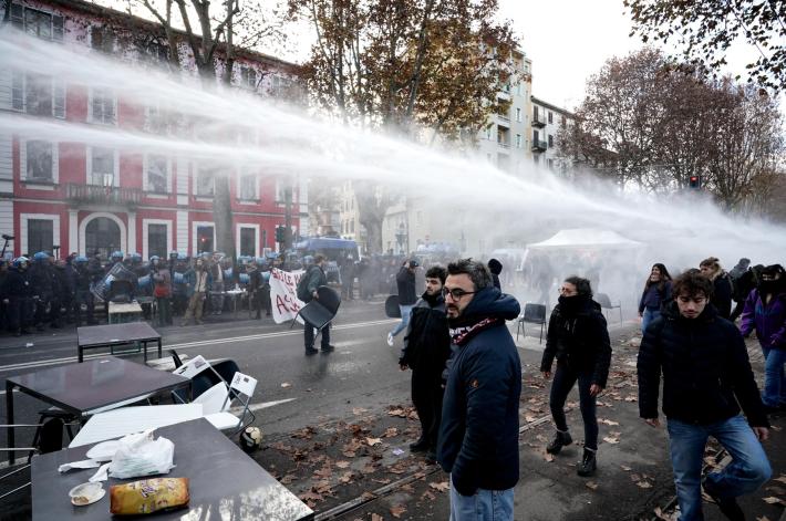 I manifestanti in presidio di fronte al centro sociale Askatasuna hanno poi tentato di rientrare nell’edificio e sono stati respinti dal cordone di sicurezza delle forze di polizia, che ha utilizzato anche l’idrante. Lo si apprende da fonti della Questura.