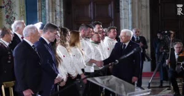 Bandiera italiana a Arianna Fontana, Federico Pellegrino, Amos Mosaner, Federica Brignone, Rene' De Silvestro e Chiara Mazzel