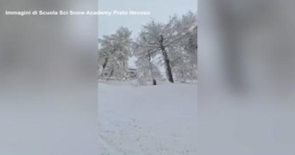 Paesaggio completamente imbiancato e precipitazioni ancora in corso