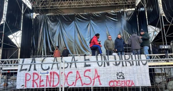 (ANSA) - COSENZA, 29 DIC - Un gruppo di famiglie senza casa ha occupato a Cosenza il palco in fase di realizzazione sul quale Brunori Sas terrà il concerto di Capodanno. Il musicista ha annunciato che devolverà in beneficenza il suo cachet. I manifestanti fanno parte del gruppo "Prendocasa". Sul palco è stato affisso uno striscione con la scritta "La casa è un diritto". "La nostra azione - ha detto Ferdinando Gentile, uno degli attivisti di 'Prendocasa' - non é diretta contro Brunori Sas, che ci ha sempre sostenuto nelle nostre battaglie. Siamo qui perché occorre dare risposte alle famiglie cosentine che vivono il dramma dell'emergenza abitativa. Siamo pronti a proseguire la nostra protesta finché il Comune di Cosenza e la Regione Calabria non si assumeranno la responsabilità di convocare un tavolo per affrontare seriamente e concretamente la problematica". "A Cosenza - ha aggiunto Gentile - centinaia di famiglie, pur avendo tutti i requisiti, non ricevono il contributo regionale dovuto, il cosiddetto 'fitto casa', dal 2023 perché l'amministrazione regionale non è in grado di reperire i fondi necessari. Inoltre, subiamo da tempo la paralisi totale delle graduatorie per gli alloggi popolari e nessuno é capace di intervenire fattivamente per risolvere la questione. Da oltre quattro anni ascoltiamo solo inutili propositi e scaricabarile. In Calabria non servono annunci, ma un piano straordinario per il diritto all'abitare che consenta alle famiglie di ottenere un alloggio dignitoso. Così come non servono i vari costruttori e politici interessati solo a costruire clientele, come avviene da decenni nella città di Cosenza. Occorre stanziare risorse vere". (ANSA).
