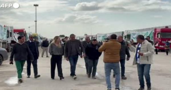 L'attrice ha incontrato i membri della Mezzaluna Rossa e gli autisti di camion umanitari