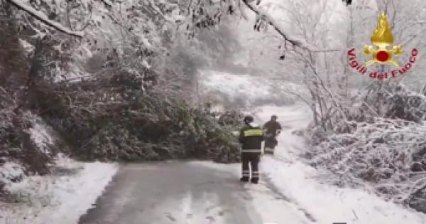 Nelle immagini, un intervento dei Vigili del fuoco nell'area di Fabriano (Ancona)