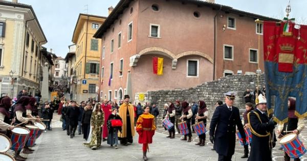 (ANSA) - GEMONA, 06 GEN - Atmosfera festosa e solenne a Gemona del Friuli (Udine) per la tradizionale Messa del Tallero, celebrata nel Duomo di Santa Maria Assunta. Il centro storico si è animato con il corteo di dame, cavalieri, armigeri, tamburi, trombe, gonfaloni e sbandieratori che hanno accompagnato sindaco e autorità civili da Palazzo Boton alla cattedrale, rievocando un rito che affonda le radici nel Medioevo. Al corteo hanno preso parte il gruppo storico di Gemona, Historica Tympana Glemonae, Vis Ferri e Terjester di Trieste, il Borgo Pracchiuso di Udine, oltre al Gruppo tamburi e sbandieratori e dama castellana di Conegliano. Nel Duomo è stata celebrata la Messa del Tallero, che unisce simbolicamente potere civico e spirituale. Un rito che non celebra vassallaggi, ma la lode di una comunità "nell'indivisibilità al Signore della pace". Dopo l'ingresso dei Re Magi e l'aspersione iniziale, al termine dell'omelia il sindaco Roberto Revelant ha offerto alla Chiesa il tallero d'argento, antico segno di collaborazione e armonia tra istituzioni. Particolarmente suggestivi sono stati alcuni passaggi rituali: il Credo secondo la tradizione aquileiese, l'incensazione riservata al sindaco (gesto unico nella liturgia occidentale, di origine bizantina), quella del popolo secondo la tradizione orientale, e il bacio della pace con il prezioso gioiello gotico dell'Incoronazione della Vergine di Nicolò Lionello. La celebrazione è stata officiata dall' arcivescovo di Udine, Mons. Riccardo Lamba, che ha richiamato il significato autentico dell' Epifania: "manifestazione" di Dio nella storia e nella fragilità umana. Riferendosi ai Magi come "cercatori", ha detto che "la vera fede riconosce Dio nei piccoli e nei fragili", auspicando che "la luce di Cristo continui a farsi strada non con il potere, ma con l'amore". (ANSA).