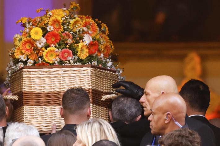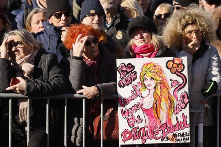 Ad accompagnare l’uscita del feretro di B.B., le note di "Djobi, djoba" direttamente interpretate da Chico, il chitarrista leader dei Gipsy Kings presente ai funerali. Sin dalla fine degli anni Settanta, Bardot sostenne il lavoro del gruppo gitano residente in Francia ma di origini ispanico-andaluse. Tra l’altro, uno dei brani più celebri dei Gipsy Kings, "La Dona", è dedicato proprio a lei. Dopo le esequie cominciate intorno alle 11 nella massima sobrietà, come voluto dall’attrice scomparsa il 28 dicembre a 91 anni, il corteo si è diretto verso il cimitero affacciato sul mare, tra gli applausi dei fan distribuiti tra la chiesa e i megaschermi allestiti in paese: uno sul porto, l’altro in centro e un terzo davanti al municipio. Durante i funerali, Mireille Mathieu, 79 anni, ha cantato una versione a cappella di Panis Angelicus. È poi seguita l’Ave Maria interpretata dal musicista Vincent Niclo. Durante la funzione anche una piccola sorpresa: le sirene di allerta del comune che risuonano normalmente in Paese ogni primo mercoledì del mese sono scattate proprio durante i funerali, come se le autorità locali avessero dimenticato di staccarle. Un fuoriprogramma interpretato da alcuni come un ultimo simbolico saluto di Saint-Tropez alla sua cittadina più illustre. In chiesa, l’amico e segretario generale della Fondazione Bardot, Max Guazzini, ha pronunciato un commosso discorso in omaggio a B.B.: «Per tutta la vita ha incarnato la libertà. Amava molto la Francia, la sua Francia. Era fiera. Tre quarti dei francesi sono contro la caccia da inseguimento e non capisco perché i politici non facciano nulla», è stato uno dei passaggi del suo discorso maggiormente ripresi dai media d’Oltralpe. Tra i presenti in chiesa, Paul Belmondo, Raphaël Mezrahi, come anche Paul Watson, noto per le sue battaglie in difesa delle balene. Tra i politici, esponenti dell’estrema destra come Marine Le Pen o Nicolas Dupont-Aignan ma anche la ministra per le Pari opportunità, Aurore Bergé. Come per i funerali di Claudia Cardinale, il 30 settembre 2025 nella chiesa di Saint-Roch a Parigi, il presidente Emmanuel Macron, insieme alla moglie Brigitte, ha tenuto ad inviare una corona di fiori in omaggio all’attrice scomparsa. Grande assente la sorella Marie-Jeanne Bardot, detta Mijanou, 87 anni, residente negli Usa. Durante la messa è stato letto un suo messaggio: «Bri mia, sei stata con me tutta la vita. Temevo che scomparissi ma no, sento la tua gioiosa presenza. Per favore, resta con me finché ti raggiungo».