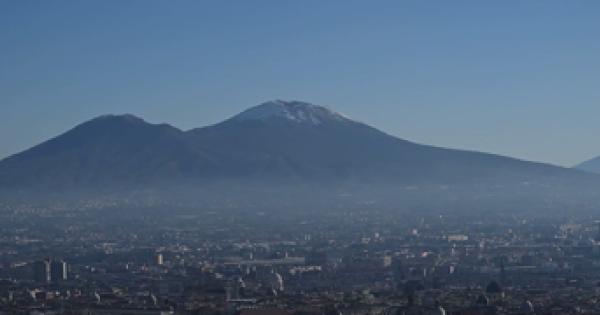 Il vulcano imbiancato sulla sommita' visto da Napoli