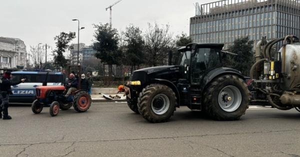 (ANSA) - MILANO, 09 GEN - A Milano i trattori bloccano il traffico contro il trattato di libero scambio con il Mercosur. I mezzi agricoli con le bandiere tricolori sono arrivati a decine in piazza Duca d'Aosta, davanti alla sede del Consiglio regionale lombardo, scaricando anche balle di fieno e suonando i clacson. La mobilitazione è stata indetta da Coapi e Riscatto agricolo Lombardia contro la firma del trattato che "favorisce la speculazione e punisce agricoltori e cittadini europei e sudamericani". Gli agricoltori chiedono di avere "un prezzo giusto per i produttori e i consumatori con nome, controlli efficaci e certi contro il trust e la speculazione". (ANSA).