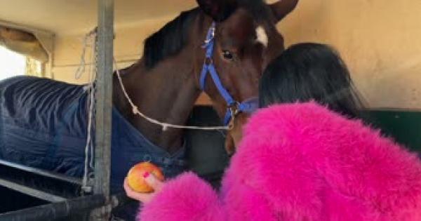 A Pavia, il box con la purosangue e' stato portato nel parcheggio della Fondazione Maugeri. Qui l'abbraccio con la fantina