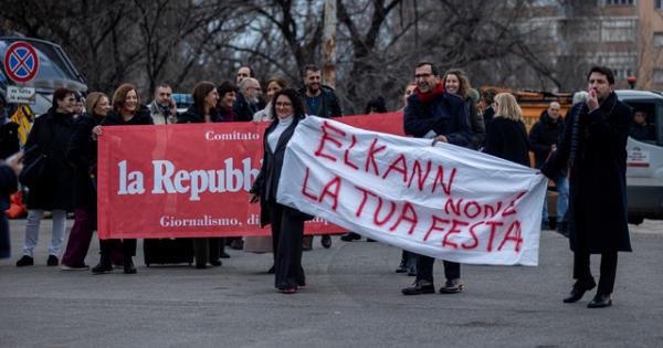 (ANSA) - ROMA, 14 GEN - "La Repubblica siamo noi. Giornalismo, dignità, indipendenza", "Elkann non è la tua festa". Sono gli striscioni di protesta mostrati dal comitato di redazione di Repubblica davanti all'ex Mattatoio di Roma che ospita la mostra dedicata ai 50 anni del quotidiano fondato da Eugenio Scalfari. Fischietti e cori, il Cdr e un gruppo di colleghi - in attesa dell'arrivo del presidente della Repubblica, Sergio Mattarella - hanno esposto così il loro dissenso contro l'amministratore delegato di Exor, John Elkann, in trattativa con il gruppo greco Antenna per la cessione degli asset editoriali del Gruppo Gedi. (ANSA).