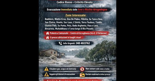 (ANSA) - NUORO, 19 GEN - A causa dell'ingrossamento del Rio Posada, dovuto alle forti precipitazioni di queste ore con il passaggio della tempesta mediterranea sulla Sardegna, il comune di Torpè, nel Nuorese, ha evacuato decine di famiglie in alcune aree limitrofe al corso d'acqua e alla diga. In particolare l'avviso dell'amministrazione, pubblicato anche sui social, riguarda le località di Baddore, Matta Erva, Ena De Puleu, Filinita, Sa Tanca Noa, San Pietro, Ussela, Sas Luas, L'Unità, Terra Teulasa, Tiedda, Giunne Pala, Su Puttu, Poiu, Badu Arghentu, Pasu e Lana, Binzarena, Multalditana e l'area lungo il Rio Posada. Un centro di accoglienza è stato allestito nella palestra comunale in via D'Arborea ma, in alternativa, i residenti si potranno recare in "altre abitazioni in luogo sicuro" Il comune raccomanda di "chiudere gas, acqua ed elettricità e di non sostare nelle zone a rischio, oltre che seguire gli itinerari di evacuazione e portare medicinali ed effetti personali". (ANSA).