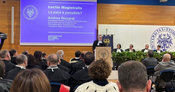 (ANSA) - UDINE, 19 GEN - "A guardare il panorama internazionale la pace sembrerebbe impossibile: il mondo è immerso in una spirale di azioni e reazioni che calpestano il diritto internazionale, con alleanze volubili e posizionamenti incongruenti. Una conflittualità che prospera in un'epoca in cui un'intera generazione, cresciuta in decenni di pace, conosce poco la guerra e l'ha a lungo data per scontata". L'ha detto Andrea Riccardi, professore emerito di Storia contemporanea, già ministro per la Cooperazione internazionale e integrazione e fondatore della Comunità di Sant'Egidio, durante la lectio magistralis "La pace è possibile?" all'inaugurazione dell'anno accademico 2025/2026 dell'Università di Udine. Riccardi ha richiamato "il ruolo decisivo che la storia ha avuto e che oggi appare indebolito da una povertà del sapere che fa sì che tutto inizi e finisca con le urgenze del presente". Secondo l'ex ministro, si tratta di "un processo accelerato dal divorzio tra cultura e politica e dall'ibridazione prima televisiva e poi dei social media, che ha prodotto un Occidente 'senza pensiero'". Da qui l'appello all' università: "Lasciarsi interrogare dalla guerra per far crescere un nuovo umanesimo capace di fare i conti con la pace. Oggi - ha avvertito Riccardi - chi vuole la guerra punta a popoli estraniati e confusi; per questo occorre creare ponti e risolvere i conflitti. Non astenersi mai perché si crede di non contare, ma abbattere muri e costruire corridoi di legami". Nel corso della cerimonia sono stati diffusi i dati sull'Ateneo. Gli immatricolati per l'anno 2025/2026 sono in lieve aumento (da 4.625 a 4.642 studenti, con +3% di lauree magistrali). Il dato non include i 273 studenti del semestre filtro non ammessi a Medicina. Gli studenti sono circa 15.300, cui si aggiungono 1.500 iscritti a dottorati, scuole di specializzazione e master. (ANSA).