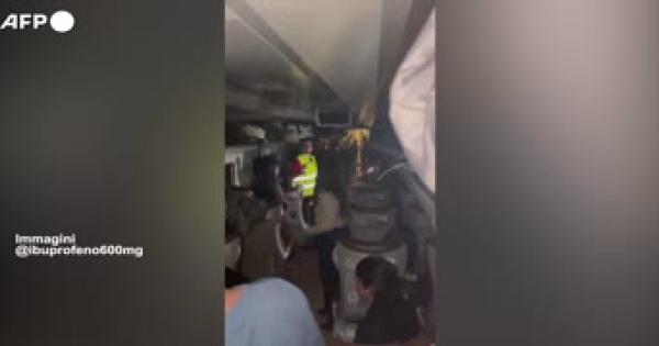 Le riprese dei passeggeri all'interno di uno dei due convogli
