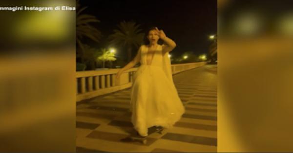 La cantante ripubblica le sue immagini con l'abito dello stilista indossato in quel Festival