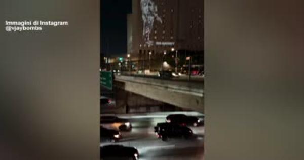 Nell'opera si vede un agente sparare alla cieca sui "nostri amici, bambini, madri"