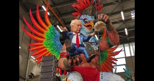 (ANSA) - VIAREGGIO (LUCCA), 06 FEB - Il carro di seconda categoria del Carnevale di Viareggio 'Native American Return', realizzato da Fabrizio e Valentina Galli, che rappresenta un nativo americano, con la testa da aquila, che toglie una parrucca al presidente degli Stati Uniti Donald Trump è stato citato all'interno del programma del comico Jimmy Kimmel Live, molto seguito negli Usa. Una risonanza mondiale per il Carnevale e la città di Viareggio a dimostrazione che la satira politica con personaggi a livello planetario non può certo passare inosservata. Per i Galli, ovviamente soddisfatti per questo riconoscimento al proprio lavoro, non è stata la prima volta di una ribalta mondiale. (ANSA).