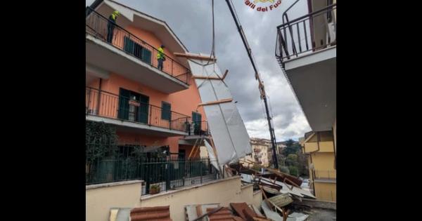 (ANSA) - ROMA, 06 FEB - Vigili del fuoco al lavoro stamattina a Fiano Romano, vicino Roma, per la messa in sicurezza di una palazzina dove, a causa del forte vento, si è scoperchiato il tetto. Oltre cento gli interventi dei pompieri dalla mezzanotte per una bomba d'acqua che ha colpito il territorio di Roma e provincia. Molte le chiamate ricevute dalla sala operativa per allagamenti di abitazioni, cantine, negozi, persone rimaste intrappolate in auto o abitazioni. (ANSA).