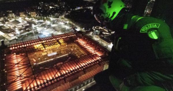 La polizia sorvola lo stadio di San Siro durante lo show di apertura dei Giochi