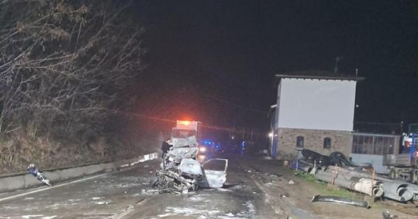 (ANSA) - BOLOGNA, 09 FEB - Il conducente di una utilitaria è morto carbonizzato in un incidente avvenuto verso l'una della scorsa notte sulla Porrettana Nord, nel territorio di Marzabotto, in provincia di Bologna. La sua auto, durante una manovra di sorpasso, si è scontrata frontalmente con un autocarro che proveniva dalla direzione opposta, poi è finita fuori strada e ha preso fuoco. Sono intervenuti vigili del fuoco, 118 e carabinieri ma, all'arrivo dei soccorritori, l'uomo era già morto carbonizzato all'interno dell'abitacolo. Sono in corso gli accertamenti per identificarlo con certezza. Il tratto della Porrettana è rimasto chiuso al traffico per diverse ore e solo in mattinata è stato riaperto. (ANSA).