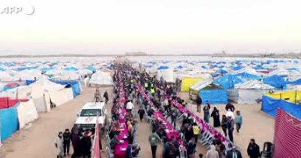 Decine di tavoli comuni nei campi profughi della Striscia per il pasto serale dell'Iftar