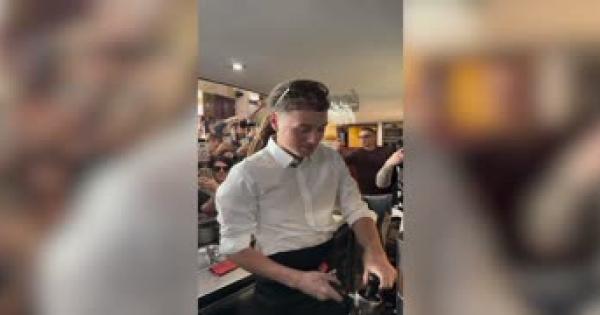 L'artista, in gara con "Tu mi piaci tanto", si e' dilettato dietro al bancone