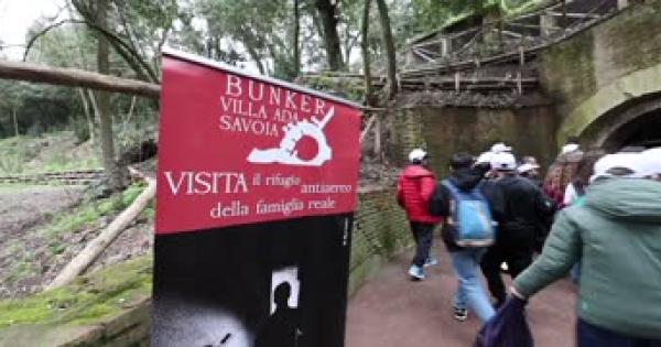 Turisti e scolaresche in visita al rifugio antiaereo costruito per la famiglia reale