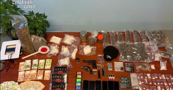 (ANSA) - MONDOVÌ, 28 FEB - Faceva capo al titolare di un bar nel territorio di Mondovì la rete di spaccio smantellata dalla locale compagnia dei carabinieri. L'uomo, un cittadino albanese, gestiva i traffici - principalmente di cocaina, ma anche di hashish e marijuana - in concorso con un connazionale, dimorante fuori regione ma solito soggiornare per lunghi periodi nel Paese d'origine. A seguito dell'attività investigativa, coordinata dalla procura di Cuneo, il gip ha emesso 14 misure cautelari, di cui 10 custodiali, quattro obblighi di dimora nei comuni di residenza e 3 decreti di perquisizione. Nell'esecuzione delle varie attività i militari hanno rinvenuto e sequestrato 3,4 chili lordi di cocaina, 4,5 chili di marijuana, cinque piantine con un impianto per la coltivazione, 0,6 chili di hashish, oltre a 100mila euro di denaro contante, un revolver calibro 38 rubato e 18 munizioni. Una 54enne, trovata in possesso di droga, è stata tratta in arresto. Le indagini hanno delineato i ruoli rivestiti da ciascun indagato, dal "broker" al "grossista" incaricato di piazzare lo stupefacente ai gestori delle varie piazze di spaccio della provincia di Cuneo, per la cessione agli acquirenti localizzati perlopiù nelle città di Mondovì, Cuneo, Saluzzo e Fossano. A supporto della compagnia di Mondovì sono intervenuti i carabinieri di altre compagnie e di altri nuclei e squadre operative, insieme al nucleo cinofili della guardia di finanza di Cuneo e della polizia penitenziaria di Torino, con il supporto aereo del nucleo elicotteri carabinieri di Orio al Serio (Bergamo). (ANSA).