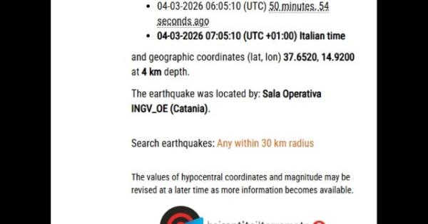 (ANSA) - CATANIA, 04 MAR - Nessuna segnalazione di danni a Catania è giunta per il terremoto di magnitudo 4.5 registrato alle 07:05 sull'Etna, ma le scuole resteranno chiuse per precauzione. Lo ha annunciato il sindaco Enrico Trantino spiegando che le lezioni sono sospese oggi a scopo precauzionale per consentire sopralluoghi alle strutture che ospitano le scuole. Analoga iniziativa è stata adottata in diversi comuni della provincia. (ANSA).