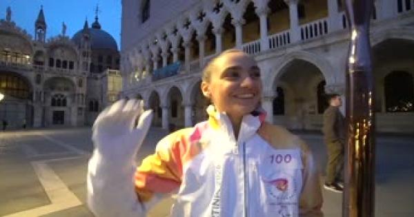 Il bracere in piazza San Marco acceso dalla cestista Matilde Villa