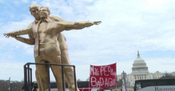 L'opera del collettivo The Secret Handshake e' comparsa di fronte a Capitol Hill