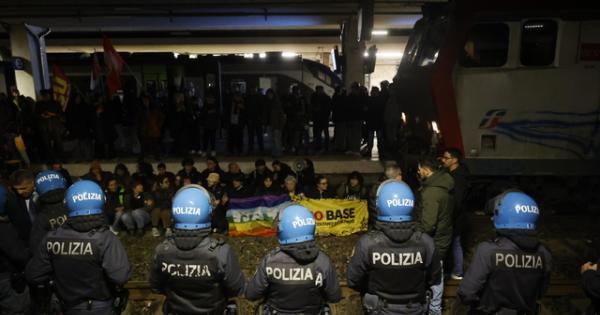 (ANSA) - PISA, 12 MAR - E' finita in tarda serata la protesta pacifista e antimilitarista del movimento No Base alla stazione di Pisa: il treno merci che trasporta mezzi militari verrà definitivamente spostato dal binario 3 dove è stato bloccato dagli attivisti alle 18.30 di oggi quando a decine hanno invaso i binari centrali e ne hanno impedito la marcia. Intorno alle 23.30 i manifestanti si sono spostati consentendo alla motrice del treno di operare in sicurezza e di sganciare i vagoni per poi raggiungere nuovamente il convoglio sulla parte posteriore, riagganciarsi e tornare indietro. Una volta che il treno merci ha lasciato la stazione, i manifestanti hanno festeggiato per la riuscita del blitz e hanno abbandonato definitivamente i binari sciogliendo la protesta e facendo definitivamente tornare alla normalità la circolazione ferroviaria alla stazione. La protesta è sempre stata pacifica, controllata a vista da un nutrito contingente di polizia e carabinieri che ha presidiato i binari. Dopo un paio d'ore di stop completo la circolazione dei treni è gradualmente ripresa intorno alle 21 sui binari dal 7 al 13, consentendo il passaggio soprattutto di quelli a lunga percorrenza che nel frattempo avevano accumulato pesanti ritardi, mentre alcuni regionali erano stati cancellati. (ANSA).