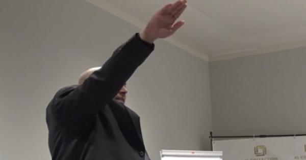 Il "presente" di Misha Vacic, membro del partito di destra serbo, alla fine del suo intervento
