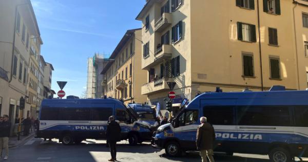 (ANSA) - FIRENZE, 28 MAR - La prima sede provinciale italiana di Futuro Nazionale presidiata dalle forze dell'ordine, in piazza Tanucci a Firenze, in vista dell'inaugurazione prevista nel pomeriggio con l'europarlamentare Roberto Vannacci. A pochi metri è in corso una festa di 'non benvenuto' di alcune decine di residenti e famiglie con bambini alle prese con gessetti colorati per fare disegni in terra. Questa sede, afferma Irene, una di loro che protesta nella piazza, "è in contrasto con i valori di chi vive in piazza Tanucci tutti i giorni". "Noi ci passiamo davanti tutti i giorni , siamo capaci di stare tutti insieme in una certa armonia ma il tipo di valori che portano i nostri nuovi 'vicini di casa' non si concilia con lo stile di vita che abbiamo scelto per le nostre famiglie". I residenti hanno organizzato un 'pranzo sociale' e alle 15 si sposteranno in piazza Leopoldo, ad alcune centinaia di metri, per un presidio di protesta contro l'apertura di Futuro Nazionale. Manifestanti contestano l'apertura della sede provinciale di Futuro nazionale di Vannacci a Firenze rimanendo in piazza Tanucci a pochi metri dallo spazio. Circa un centinaio i presenti radunatisi dietro a uno striscione 'Vannacci a Firenze 'un ti si vole'. "Vannacci carogna, Rifredi non ti vuole" e "Unici stranieri, fascisti nei quartieri", alcuni dei cori lanciati. La sede al momento è aperta, presidiata da un crescente numero di forze dell'ordine. Via Corridoni, la strada di scorrimento verso il centro, è stata chiusa al traffico. Poche le famiglie rimaste in piazza Tanucci dopo il pranzo sociale di critica alla presenza di Futuro Nazionale, che apre qui la prima sede provinciale di tutta Italia. Era stato preavvisato alla questura un presidio contro l'iniziativa di Fnv in una piazza vicina, piazza Leopoldo, dalle ore 15. Sulla facciata di un condominio di piazza Tanucci è comparso lo striscione 'Firenze città antifascista'. E' un piccolo lenzuolo bianco esposto dai proprietari di un appartamento che si trova proprio sopra il fondo a pian terreno, un ex esercizio commerciale, dove Futuro Nazionale di Vannacci apre nel pomeriggio la prima sede provinciale in Italia. Quando la scritta è stata appesa ci sono stati applausi e i presenti hanno iniziato a intonare il coro "Siamo tutti antifascisti". (ANSA).