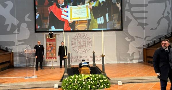 - BOLOGNA, 30 MAR - L'aula magna di Santa Lucia dell'Università di Bologna è gremita per le esequie accademiche del magnifico rettore Fabio Alberto Roversi-Monaco, morto venerdì a Bologna all'età di 87 anni. A dare l'ultimo saluto a Roversi-Monaco, alla guida dell'Università di Bologna dal 1985 al 2000, ci sono il professor Romano Prodi, il capogruppo alla Camera di FdI Galeazzo Bignami, il presidente della Regione, Michele de Pascale e la vicesindaca di Bologna, Emily Clancy. In prima fila sono sedute le figlie Maria Giulia, Francesca, Maddalena e Camilla e la moglie di Roversi-Monaco. Fino alle 14 è possibile rendere omaggio alla salma. Il funerale poi si terrà alle 14.30 nella cattedrale di San Pietro.