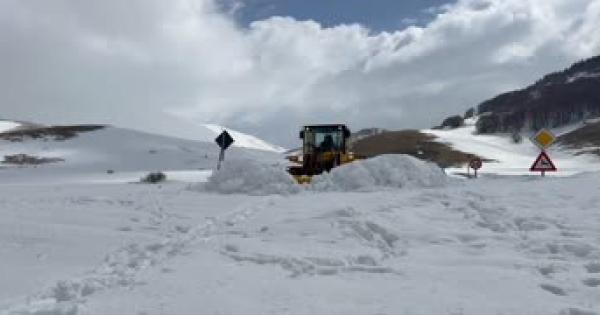 L'intervento dei mezzi sulla provinciale tra Castelsantangelo sul Nera e Castelluccio di Norcia