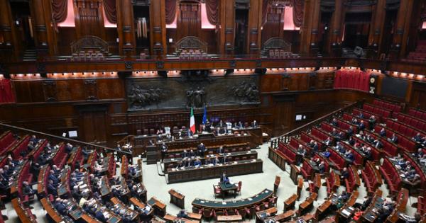 (ANSA) - ROMA, 07 APR - Sui banchi del governo in Aula alla Camera, mentre è in corso l'informativa del ministro della Difesa Guido Crosetto, siedono i ministri Tommaso Foti, Roberto Calderoli e Gianmarco Mazzi. Nell'emiciclo massiccia presenza dei deputati di FdI, mentre sono poco piú di dieci i parlamentari della Lega presenti. Per Forza Italia sono sempre una decina i deputati che seguono l'informativa, tra cui la responsabile Esteri del partito Deborah Bergamini. Accanto alla capogruppo dem, siede la segretaria del Pd Elly Schlein. (ANSA).