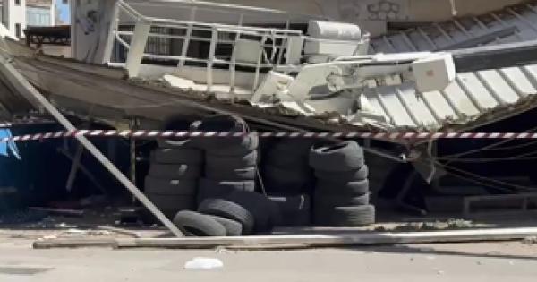 Un collega si salva finendo sui copertoni di un'attivita' di ricambio pneumatici