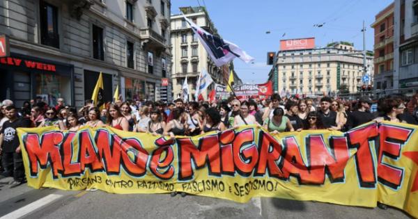 (ANSA) - MILANO, 18 APR - È partito da piazza Tricolore il corteo organizzato dai centri sociali milanesi in risposta al raduno dei Patrioti europei promosso dalla Lega in piazza Duomo. Il percorso terminerà in piazza Santo Stefano, in zona Statale, a poca distanza da dove è in corso la manifestazione del Carroccio. Alcune centinaia al momento i manifestanti. Tra i presenti i centri sociali Lambretta e Zam, oltre a manifestanti di Dax Resiste. Sventolano numerose bandiere della Palestina e della milizia curda. In testa lo striscione nero con la scritta "Antifa". Intonati cori contro il leader del Carroccio: "Matteo Salvini non ti vogliamo" e "Lega Salvini e lascialo legato", oltre a slogan a sostegno della Palestina e il coro "No border no nation, fuck remigration". Da poco è partito anche il corteo No Remigration, che ha riunito partiti e associazioni a piazza Lima e, poco distante, lo spezzone proPal. Ad aprire il corteo lo striscione con la scritta 'Milano è migrante'