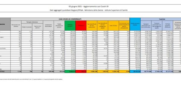 Lieve calo dei contagi in Italia. Secondo i dati del ministero della Salute, i nuovi positivi sono 2.436 in leggero calo rispetto ai 2.557 registrati nelle 24 ore precedenti, questo a fronte di 238.632 tamponi e che determina un tasso di positività in calo all'1%. Scendono i decessi, 57 (-16), 7.200 i guariti mentre gli attualmente positivi flettono di 4.823 attestandosi ad un numero totale di 195.369. Per quanto riguarda i ricoveri si registra anche oggi un calo. Nei reparti ordinari sono ricoverate 5.193 (-295), nelle terapie intensive i degenti sono invece 788 (-45) con 20 nuovi ingressi, dato tra i piu' bassi dall'inizio della pandemia. Il calo riguarda anche le persone in isolamento domiciliare, ad oggi 189.388. Sul fronte delle singole regioni, la Lombardia registra il numero maggiore di nuovi contagiati (436), seguita da Campania (307) e Sicilia (234). In Molise i nuovi positivi sono 4 mentre in Valle d'Aosta 5.