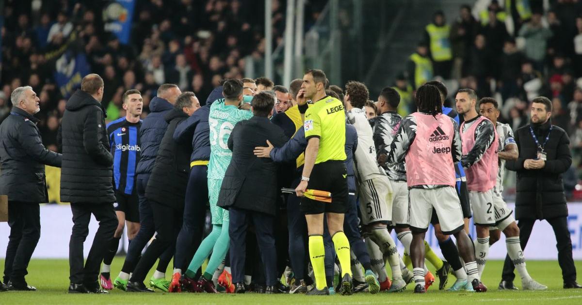 MILANO (ITALPRESS) - Curva della Juventus chiusa per una partita, tre giornate a Juan Cuadrado, una a testa per Samir Handanovic e Romelu Lukaku. Non ci è andato leggero il giudice sportivo Alessandro Zampone, in merito a quanto successo nella semifinale d'andata di martedì all'Allianz Stadium. La società bianconera dovrà una gara con il settore denominato "Tribuna Sud", primo anello, privo di spettatori. I collaboratori della Procura federale, si legge nel dispositivo, hanno segnalato che "i sostenitori della Juventus occupanti il primo anello del settore denominato 'Tribuna Sud' levavano, al 35° ed al 49° del secondo tempo, beceri e insultanti cori e grida di discriminazione razziale" nei confronti di Lukaku. "Tali gravi manifestazioni di discriminazione razziale, percepite da tutti e tre i rappresentanti della Procura federale dislocati nelle varie parti dell'impianto, provenivano dalla maggioranza dei 5.034 occupanti il predetto settore", fa sapere ancora il giudice sportivo. Per quanto riguarda la rissa in campo, Cuadrado - oltre a un turno perchè diffidato e ammonito - viene sanzionato con altre due giornate perché, "al termine della partita, a seguito di un diverbio con un calciatore della squadra avversaria, lo strattonava vigorosamente cingendogli le mani al collo e indirizzandogli un pugno al volto (atto, quest'ultimo, rilevato dai collaboratori della Procura federale); veniva diviso a forza dal giocatore avversario grazie all'intervento di alcuni compagni di squadra". Per il colombiano anche 10 mila euro di ammenda così come per Handanovic, protagonista della lite con lo stesso Cuadrado e sanzionato con un turno perchè "lo strattonava vigorosamente cingendogli le mani al collo; veniva diviso a forza dal giocatore avversario grazie all'intervento di alcuni compagni di squadra". Espulso per doppia ammonizione, anche Lukaku salterà il ritorno, ammenda di 20.000 euro al dirigente nerazzurro Baccin "perché al termine della gara, benchè non inserito in distinta, faceva ingresso sul terreno di gioco nel tentativo di raggiungere il direttore di gara; bloccato grazie all'intervento di alcuni dirigenti della società Internazionale, rivolgeva al direttore di gara ripetute espressioni gravemente offensive e ingiuriose". - foto LivePhotoSport - (ITALPRESS). glb/gm/red 06-Apr-23 16:17