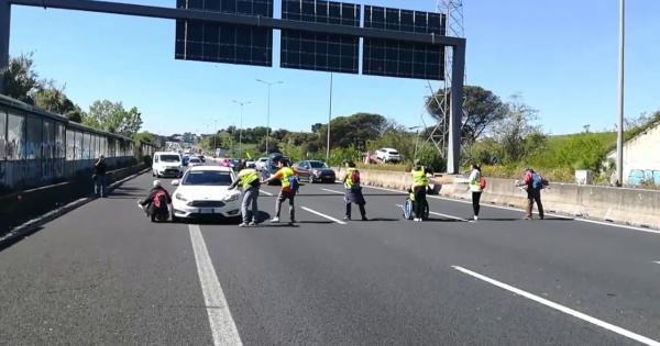Gli attivisti di Ultima Generazione bloccano il Gra a Roma