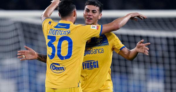 NAPOLI (ITALPRESS) - Successo sorprendente per il Frosinone, che batte 4-0 il Napoli e lo elimina dalla Coppa Italia agli ottavi di finale. Dopo un primo tempo di controllo dei partenopei, l'undici di Di Francesco la sblocca grazie a Barrenechea per poi proseguire a valanga con le reti di Caso, Cheddira (su rigore) e Harroui. La prima occasione della gara è per il Napoli, al 16', con lo scambio sulla destra tra Zanoli e Lindstrom che porta il danese alla conclusione sulla quale è reattivo Cerofolini in respinta. Azzurri che continuano il giro palla e vanno ancora vicini al gol, sei minuti più tardi, con Raspadori che si libera sulla sinistra, salta il portiere gialloblù ma da posizione defilata colpisce il palo. Ennesimo brivido per il Frosinone, così come quello che si concretizza al 37', con il retropassaggio di Okoli intercettato e messo in rete da Simeone che però non vale il vantaggio partenopeo a causa di un tocco di mano di Lindstrom ravvisato dal Var in avvio di azione. Napoli che anche in apertura di ripresa sfiora il vantaggio, con il calcio di punizione dal limite battuto bene da Mario Rui ma che si infrange sul palo alla destra di Cerofolini. Tiene botta lo schieramento di Di Francesco, che sfrutta la prima vera palla buona nel miglior modo possibile al minuto 65, con il corner battuto da Garritano e il colpo di testa col tempo giusto di Barrenechea sul quale non può nulla Gollini. Napoli colpito, psicologicamente così come nel punteggio, che appena cinque minuti più tardi cambierà ancora in favore del Frosinone, con il retropassaggio sbagliato da Di Lorenzo e sfruttato da Caso che davanti a Gollini è freddissimo nel siglare il 2-0. Mazzarri, oltre ai neo entrati Kvaratskhelia e Osimhen, inserisce anche Politano, non trovando però lo sprint che immaginava e lasciando campo ai gialloblù che nel recupero trovano anche il terzo gol: ancora Di Lorenzo protagonista in negativo sponda Napoli per il fallo in area su Soulé che causa il rigore concretizzato poi da Cheddira per il 3-0. Gara di fatto in archivio, ma che si chiude addirittura con il quarto gol targato Frosinone, stavolta con la firma di Harroui pescato in solitaria da Lirola e libero di battere ancora Gollini. Storica qualificazione ai quarti per i ciociari che attendono ora una fra Juventus e Salernitana. - foto Image - (ITALPRESS). glb/red 19-Dic-23 23:10
