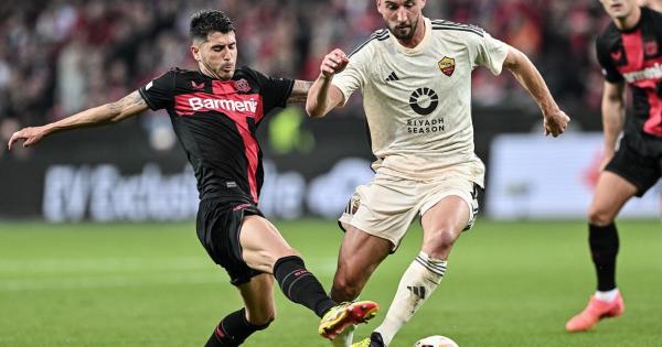 LEVERKUSEN (GERMANIA) (ITALPRESS) - La Roma sfiora l'impresa a Leverkusen, ma in finale di Europa League va il Bayer di Xabi Alonso che all'83' e al 97' segna i gol del pareggio sul 2-2 con una sfortunata autorete di Mancini e il sigillo di Stanisic, dopo la doppietta su rigore di Paredes. Grazie allo 0-2 dell'Olimpico, saranno quindi i tedeschi a sfidare l'Atalanta di Gasperini a Dublino e lo faranno con la striscia d'imbattibilità record ancora aperta a 49 gare. Una piccola consolazione per i giallorossi che costruiscono le prime due occasioni da gol della partita. Al 4' Pellegrini sorprende la difesa tedesca con un lancio per Lukaku, che aggancia ma sbaglia l'ultimo tocco favorendo l'uscita del portiere Kovar. Al 17' è il capitano giallorosso a sfiorare l'1-0: El Shaarawy crossa dalla destra, Pellegrini tutto solo in area di testa in tuffo non riesce a superare l'estremo difensore. Il Bayer capta il pericolo e alza la pressione. E a complicare le cose per De Rossi c'è l'infortunio di Spinazzola che al 21' lascia il posto a Zalewski. Cambia il piano gara e la Roma va in confusione. Al 29' Palacios lascia partire un tiro rasoterra che si stampa sul palo e carambola sulla schiena di Svilar, ma Ndicka è veloce nel rinviare il pallone vagante. L'estremo difensore giallorosso è decisivo al 31' su un sinistro a giro di Frimpong e poi al 40' con una doppia risposta su Adli e Hofmann. Proprio quando la Roma sembra essere sul punto di crollare, si riaccende la speranza dei giallorossi: Tah trattiene Azmoun in area, l'arbitro Makkelie vede tutto e fischia il rigore. Al 43' dagli undici metri Paredes firma l'1-0 romanista. In avvio di ripresa la Roma è subito pericolosa con i tiri di Azmoun ed El Shaarawy, mentre il Bayer risponde con un contropiede chiuso da una splendida uscita di Svilar su Hofmann. Al 66' la Roma firma il 2-0, ancora su rigore. Hlozek tocca di mano sugli sviluppi di un cross, Makkelie viene richiamato al var e concede il penalty: Paredes è nuovamente gelido nel battere Kovar. Gli sforzi della Roma vengono però vanificati da un autogol di Mancini all'84'. Sugli sviluppi di un corner, Svilar sbaglia l'uscita e inganna il difensore: la palla sbatte sulla faccia del centrale e termina in rete. Nel recupero, al 97', c'è anche il 2-2 di Stanisic. Sfuma il sogno del derby italiano in finale. Continua l'imbattibilità del Bayer. - foto Image - (ITALPRESS). spf/gm/red 09-Mag-24 23:07