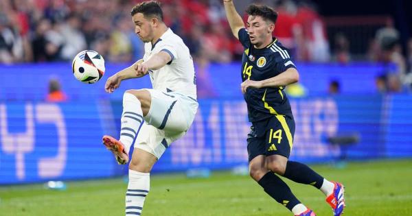 COLONIA (GERMANIA) (ITALPRESS) - Pareggio divertente tra Scozia e Svizzera, che chiudono sull'1-1 e rimandano qualsiasi discorso in merito alla qualificazione agli ottavi di finale di Euro2024 all'ultima giornata del Girone A, nella quale la formazione di Yakin affronterà la Germania, mentre quella di Clarke se la vedrà con l'Ungheria. Le reti, tutte nel primo tempo, di McTominay e Shaqiri, con diverse altre occasioni e gol annullati. Bastano soli tredici minuti alla Scozia per trovare la rete del vantaggio, sull'azione di ripartenza nata da un corner svizzero sul quale Robertson cambia il fronte e serve McGregor sulla sinistra, con il numero 8 che poi è bravo a servire con un pallone arretrato McTominay, autore del tiro che, aiutato da una deviazione di Schar, batte Sommer. Vantaggio scozzese che tuttavia durerà soltanto fino al 26', con il retropassaggio sbagliato da Ralston a favorire Shaqiri che dal limite dell'area calcia con il sinistro a giro che si infila sotto l'incrocio. Pareggio ristabilito a Colonia e Svizzera che alza i giri del motore, facendosi nuovamente pericolosa al 32', con l'azione manovrata che porta alla conclusione di Ndoye e alla bella parata di Gunn. Lo stesso giocatore del Bologna, sul corner successivo, troverebbe anche il gol del 2-1, viziato però da una sua precedente posizione di offside. Primo tempo equilibrato e con spunti da entrambe le parti, così come nella ripresa, con la Svizzera nuovamente vicina alla rete per merito di Ndoye, che in posizione centrale si libera di Tierney e calcia trovando però un'altra parata reattiva di Gunn a tenere in piedi la Scozia. Reagisce poi proprio la formazione di Clarke, che al 67', sulla punizione battuta da Robertson, colpisce il palo con la testata di Hanley, a centimetri dalla rete del possibile nuovo vantaggio. Equilibrio che domina anche il finale di partita, con un altro gol annullato alla Svizzera, al minuto 82, sullo scatto in profondità del subentrato Embolo che batte Gunn con un pallonetto ma il tutto partendo da posizione di fuorigioco. L'ultima occasione della sfida ce l'avrà ancora la squadra elvetica, sulla punizione battuta da Rieder e deviata di testa da Amdouni, che non trova la porta e spegne di fatto le speranze per i suoi di acciuffare la vittoria che sarebbe valsa la qualificazione agli ottavi di finale e chiudendo così la sfida di Colonia. - Foto Ipa Agency - (ITALPRESS). xi6/mc/red 19-Giu-24 23:06