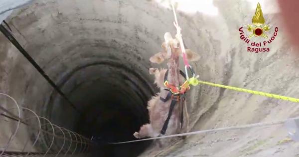 Una capra cade in un pozzo profondo 15 metri, le immagini
