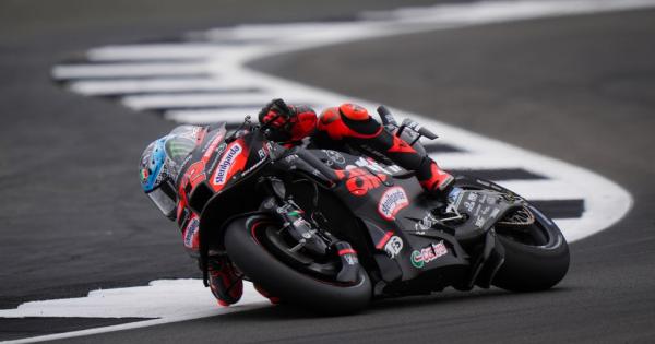 SILVERSTONE (GRAN BRETAGNA) (ITALPRESS) - Marco Bezzecchi, in sella all'Aprilia, vince il Gran Premio di Gran Bretagna, sul circuito di Silverstone. Sul podio si piazzano Johann Zarco (Honda LCR), al secondo posto, e Marc Marquez (Ducati Lenovo), al terzo. Fino a sette giri dal termine la corsa era stata dominata da Fabio Quartararo (Yamaha), costretto, però, al ritiro, a causa della rottura dell'abbassatore anteriore. Franco Morbidelli (Ducati Pertamina) e Alex Marquez (Ducati Gresini) sono rispettivamente quarto e quinto. Nell'ordine, completano la top ten Pedro Acosta (Ktm), Jack Miller (Prima Pramac Yamaha), Luca Marini (Honda), Fermin Aldeguer (Ducati Gresini) e Fabio Di Giannantonio (Ducati Pertamina). Ennesima prestazione da dimenticare, invece, per Francesco Bagnaia (Ducati Lenovo), caduto nel corso del quarto giro. La gara era stata interrotta per bandiera rossa, a causa della presenza di macchie d'olio sulla pista: i fratelli Marquez, inizialmente scivolati si sono così potuti rischierare in griglia per la seconda partenza. - Foto: Ipa Agency - (ITALPRESS). xl9/pc/red 25-Mag-25 15:16