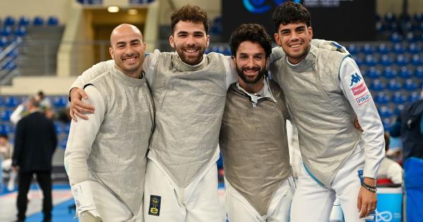 TBILISI (GEORGIA) (ITALPRESS) - Medaglia d'oro per la squadra azzurra maschile di fioretto ai Mondiali di Tbilisi. Il quartetto del ct Simone Vanni, composto da Guillaume Bianchi, Filippo Macchi, Tommaso Marini e Alessio Foconi, ha superato in finale per 43-42 gli Stati Uniti, laureandosi così campione del mondo 2025. Dopo il debutto vittorioso di ieri contro la Croazia (45-30), gli azzurri oggi hanno superato per 45-20 Singapore negli ottavi, per 45-36 la Polonia nei quarti e per 45-30 la Francia in semifinale per poi completare la grande giornata con l'assalto vincente in finale. Per l'Italia è la quarta medaglia, la prima d'oro, nella rassegna iridata georgiana dopo i bronzi conquistati ieri da Luca Curatoli (sciabola) e da Martina Favaretto e Anna Cristino (fioretto). - foto Bizzi/Federscherma - (ITALPRESS). mc/glb/red 26-Lug-25 19:23