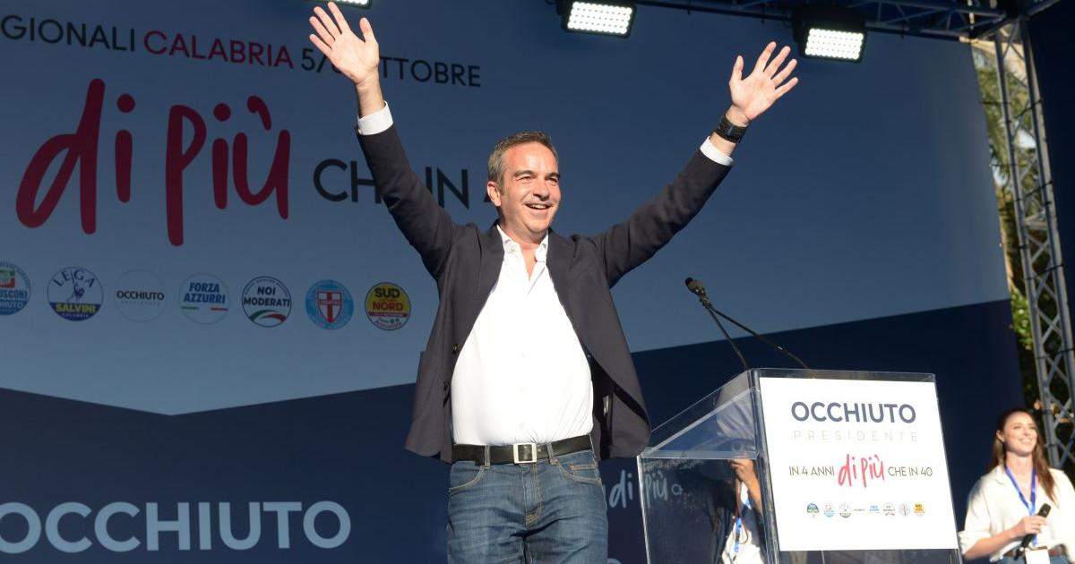 ROMA (ITALPRESS) - Si profila una larga vittoria di Roberto Occhiuto alle elezioni regionali in Calabria. Il governatore uscente, candidato del centrodestra, secondo le prime proiezioni realizzate dal consorzio Opinio per Rai (copertura campione 7%), ottiene il 57,5%, mentre lo sfidante del centrosinistra Pasquale Tridico si ferma al 41%. "Anche in Calabria gli elettori hanno riposto la loro fiducia nella coalizione di centrodestra, confermando Roberto Occhiuto presidente della Regione - commenta sui social il premier Giorgia Meloni -. Un risultato importante a riconoscimento dell'azione di buon governo che continueremo a portare avanti per il benessere del territorio e dei cittadini. Le mie congratulazioni a Roberto, al quale auguro buon lavoro". "Un grande successo di Occhiuto e Forza Italia che conferma il centrodestra come forza che raccoglie tanti consensi. Un voto per la Calabria, evidentemente nulla di esterno ha influito sui voti dei calabresi", ha detto il vicepremier, ministro degli Esteri e segretario nazionale di Forza Italia, Antonio Tajani dal quartier generale di Roberto Occhiuto a Gizzeria. "Grande vittoria per il centrodestra in Calabria. Da una parte chi protesta, devasta le città e attacca le Forze dell'Ordine, dall'altra i cittadini che pensano al bene del proprio territorio. Avanti tutta!", scrive su X il vicepremier, ministro delle Infrastrutture e dei Trasporti e leader della Lega Matteo Salvini. - Foto IPA Agency - (ITALPRESS). sat/red 06-Ott-25 17:14