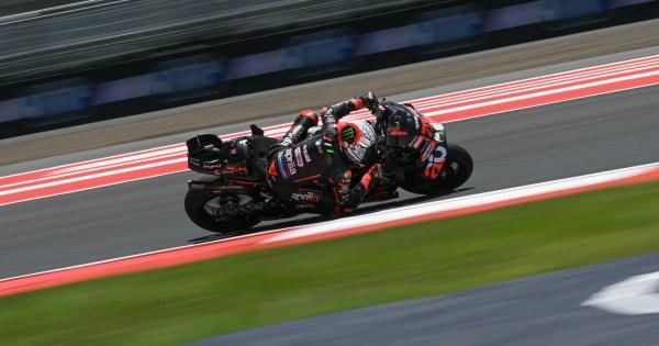 ROMA (ITALPRESS) - Marco Bezzecchi (Aprilia) domina la Sprint Race del Gran Premio di Australia, diciannovesimo appuntamento del Mondiale di MotoGp. Il pilota riminese, alla terza vittoria nelle ultime quattro Sprint, scattato dalla seconda casella, imprime un ritmo insostenibile per tutti gli avversari e rifila al traguardo 3"149 a Raul Fernandez (Aprilia Trackhouse). Completa il podio Pedro Acosta (Ktm), che la spunta in volata su Jack Miller (Yamaha Pramac) e Fabio Di Giannantonio (Ducati VR46). Sesta piazza per Alex Marquez (Ducati Gresini) e settima per il poleman Fabio Quartararo (Yamaha). A punti anche Luca Marini (Honda) e Pol Espargaro (Ktm Tech3). Francesco Bagnaia (Ducati), partito 11°, non trova mai il feeling in simulazione gara e termina 19° davanti solamente al compagno Michele Pirro (Ducati). Cadute per Brad Binder (Ktm) e Fermin Aldeguer (Ducati Gresini). Nella gara lunga di domani Bezzecchi dovrà scontare ben due long lap penalty a causa dell'incidente provocato nel Gp di Indonesia. Nessuna Ducati in prima fila con Quartararo, Bezzecchi e Miller in prima, seconda e terza posizione. Seconda fila tutta spagnola con Fernandez davanti ad Acosta e Alex Marquez. Scatterà settimo Aldeguer, in terza fila assieme a Espargaro e Marini. Aprirà la quarta fila Di Giannantonio. Bagnaia partirà 14°: ha ostacolato Bezzecchi nel giro lanciato ed è stato penalizzato con 3 posizioni in griglia. Weekend complicato per Franco Morbidelli (Ducati VR46), 15° nella Sprint e 17° in qualifica. - foto Ipa Agency - (ITALPRESS). mec/pdm/red 18-Ott-25 09:27