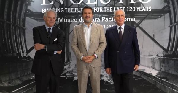 Salvini visita la mostra "Evolutio" di Webuild all'Ara Pacis di Roma